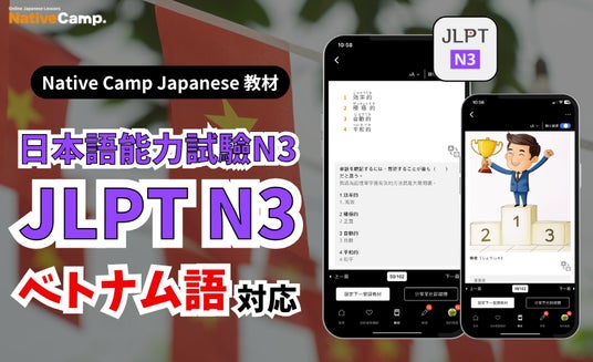 株式会社ネイティブキャンプ(本社:東京都渋谷区、代表取締役社長:谷川国洋)が提供するオンライン日本語会話サービス『Native Camp Japanese』は、このたび、教材「日本語能力試験N3」(JLPT N3)が、新たにベトナム語に対応いたしました。